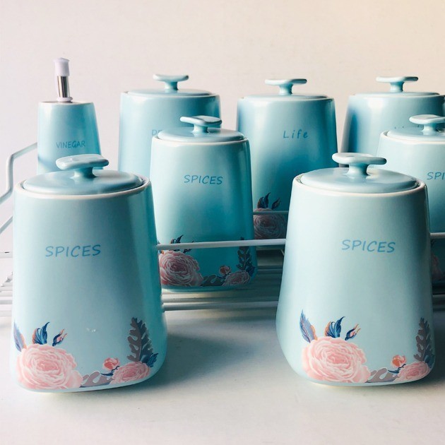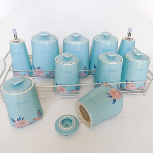 Spices set 10 pieces Baby Blue + metal stand :