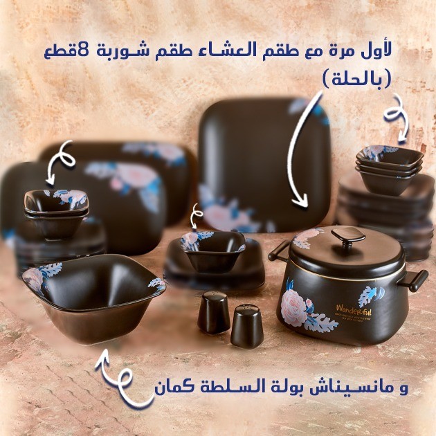 Hadwaz Porcelain Dinner set 32 Pieces Black :