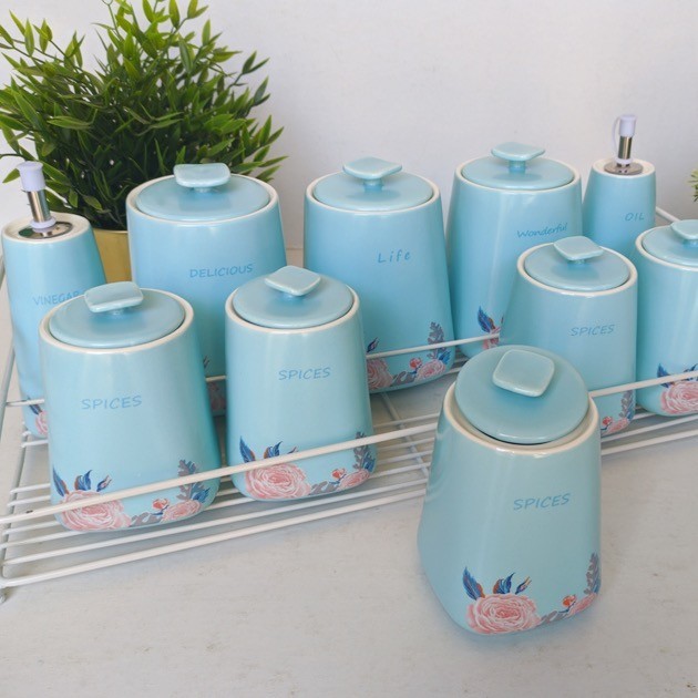Spices set 10 pieces Baby Blue + metal stand :